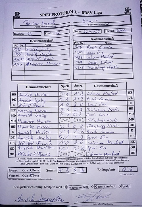 Keiner der beiden Kapitäne vorher gemeldet, BSD Treffpunkt war am Spieltermin vor Ort.