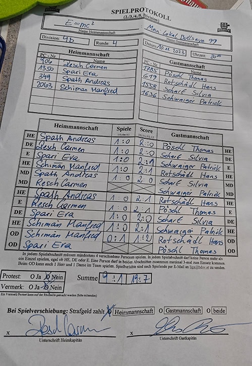 E=mc2 : Mein Lokal Bullseye 99 (Spielverschiebung 10.11.23)