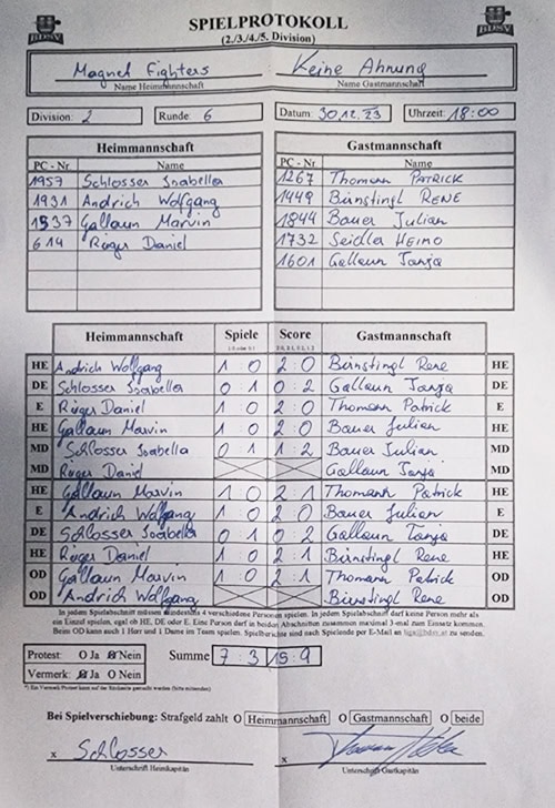 DSV Rosental 1 : Mein Lokal Bullseye 88