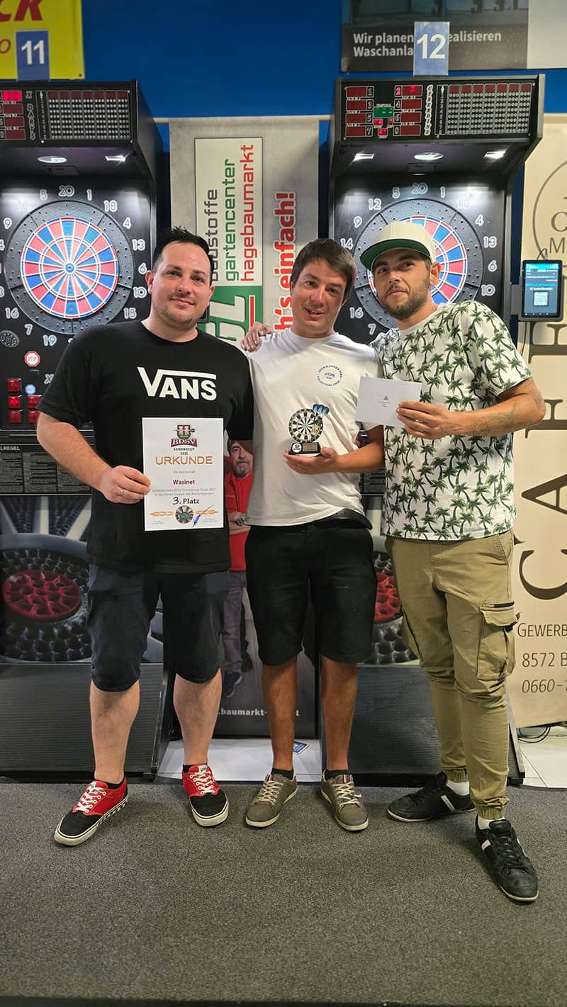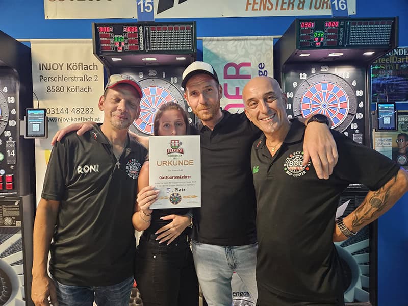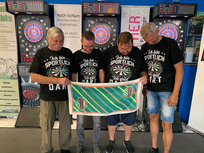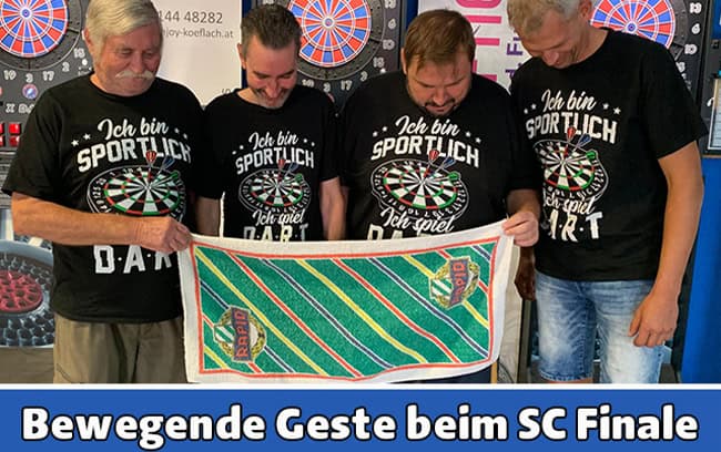 Ein Team musste kurzfristig absagen. In bewegender Geste hielten vier Herren eine Trauerminute ab – samt Rapid-Wien-Handtuch, das aussah wie ein Fossil aus der Steinzeit. Fußball im Darttempel – skurril, aber herzlich.