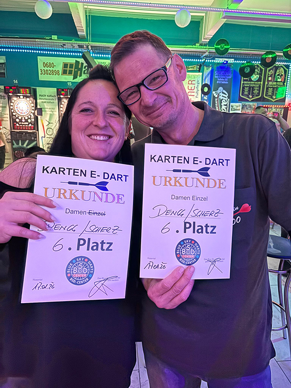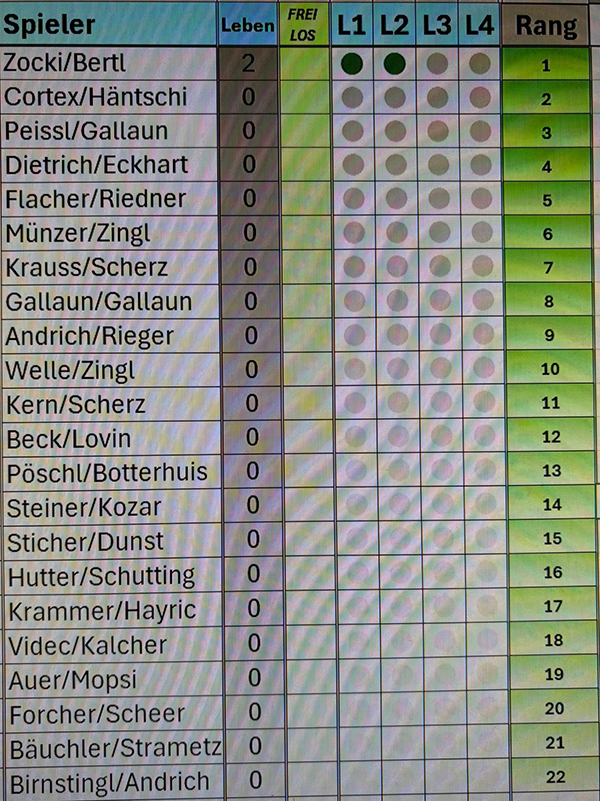 Premiere auch für das neu programmierte Karten-Dart-Turnierprogramm, frisch aus der Tastatur des BDSV-Obmanns.