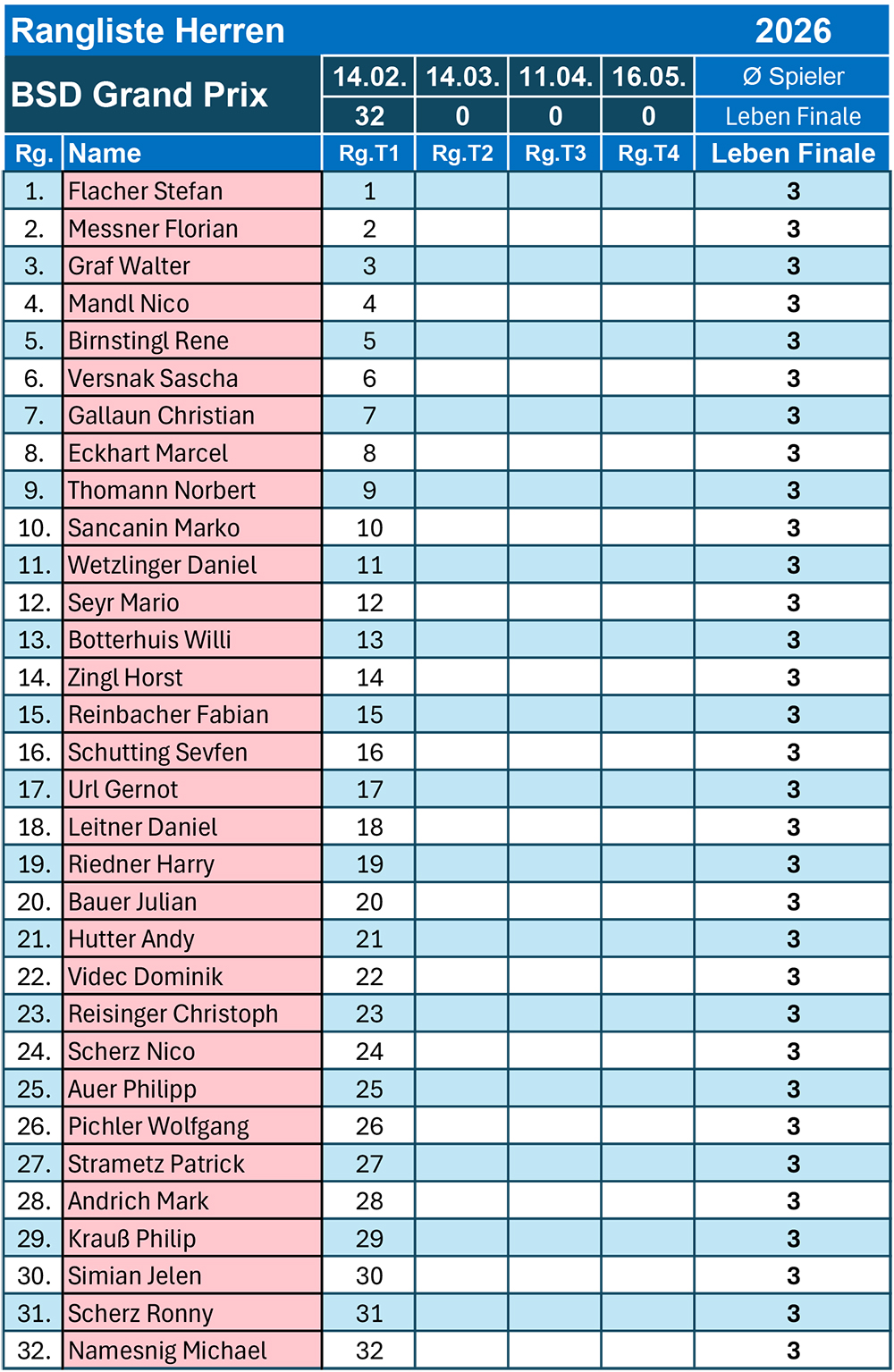 0 Vorrunden → 2 Leben + € 30,- Nenngeld