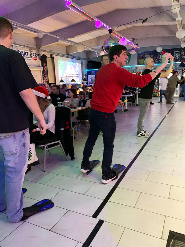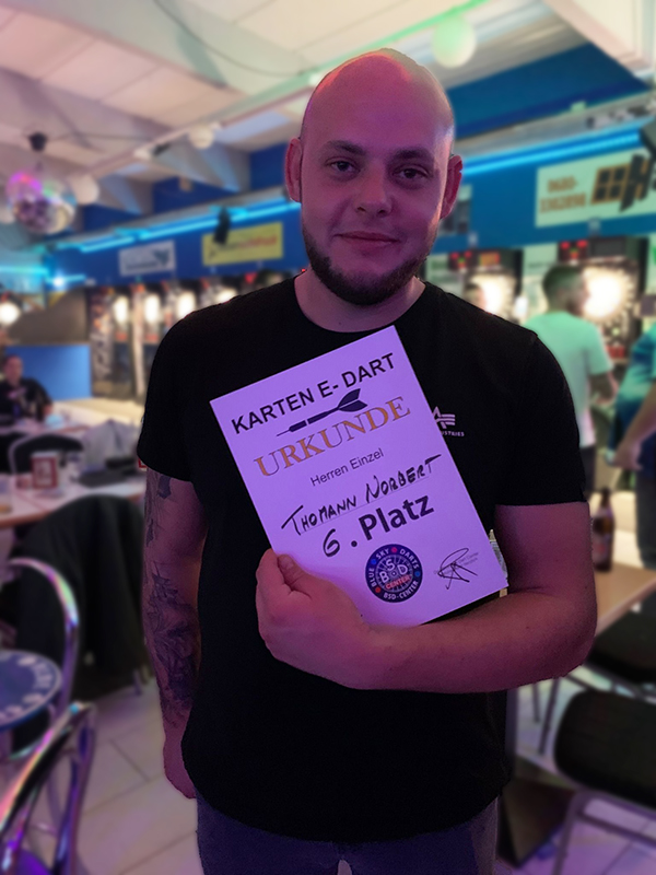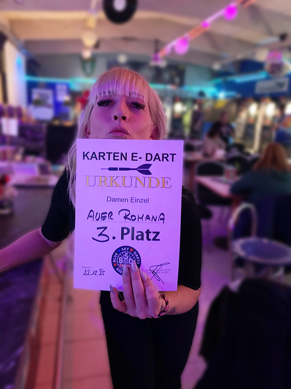 Eine würdige Nummer 1 – wie beim legendären Verein „FC Glänzende Stirn 04 – Abteilung Präzisionsvernichtung“, wo man sagt: Der Kopf ist blank, aber der Wurf messerscharf. Schwarzer Humor? Vielleicht. Respekt? Maximal. Roland zeigte: Manche gewinnen Turniere – andere führen sie. 🎯🖤