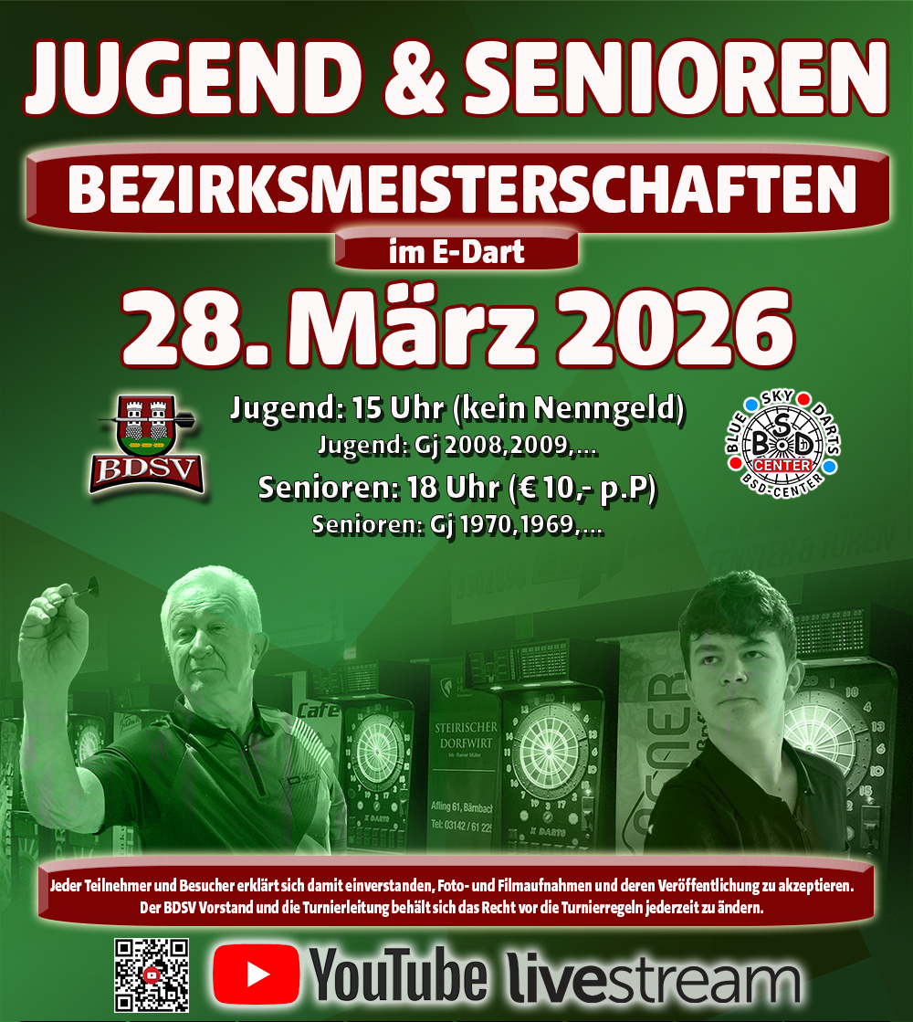 🔥 JUGEND & SENIOREN – Bezirksmeisterschaften im E-Dart 2026 🔥