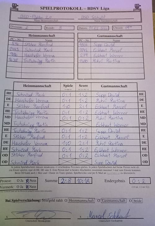 Streichergebnis Herren 2025/26