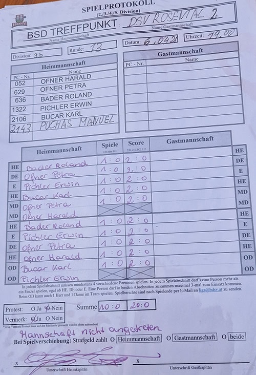 Keiner der beiden Kapitäne vorher gemeldet, BSD Treffpunkt war am Spieltermin vor Ort.