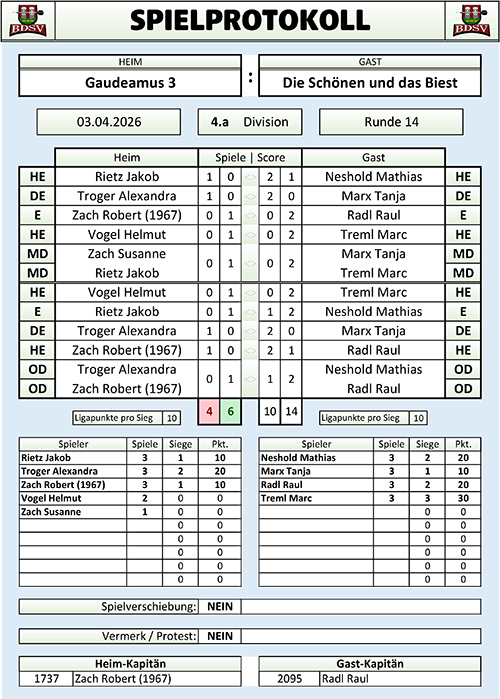 Streichergebnis Herren 2025/26