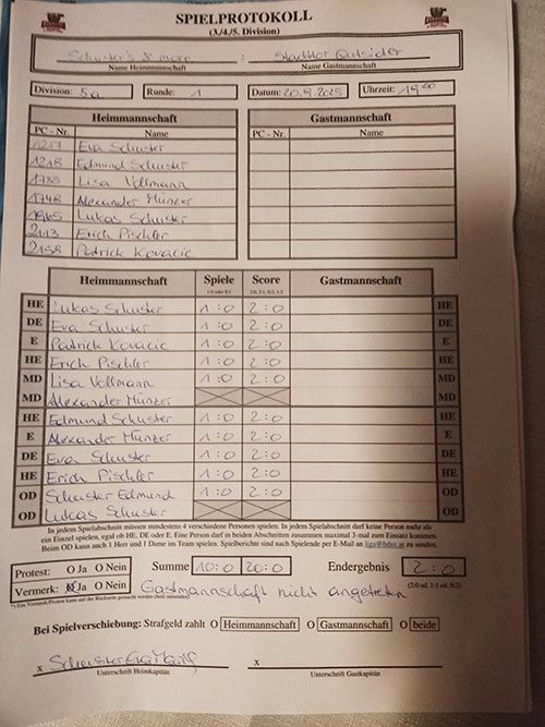 Bei nochmaligen nicht antreten Ausschluß aus der Liga.